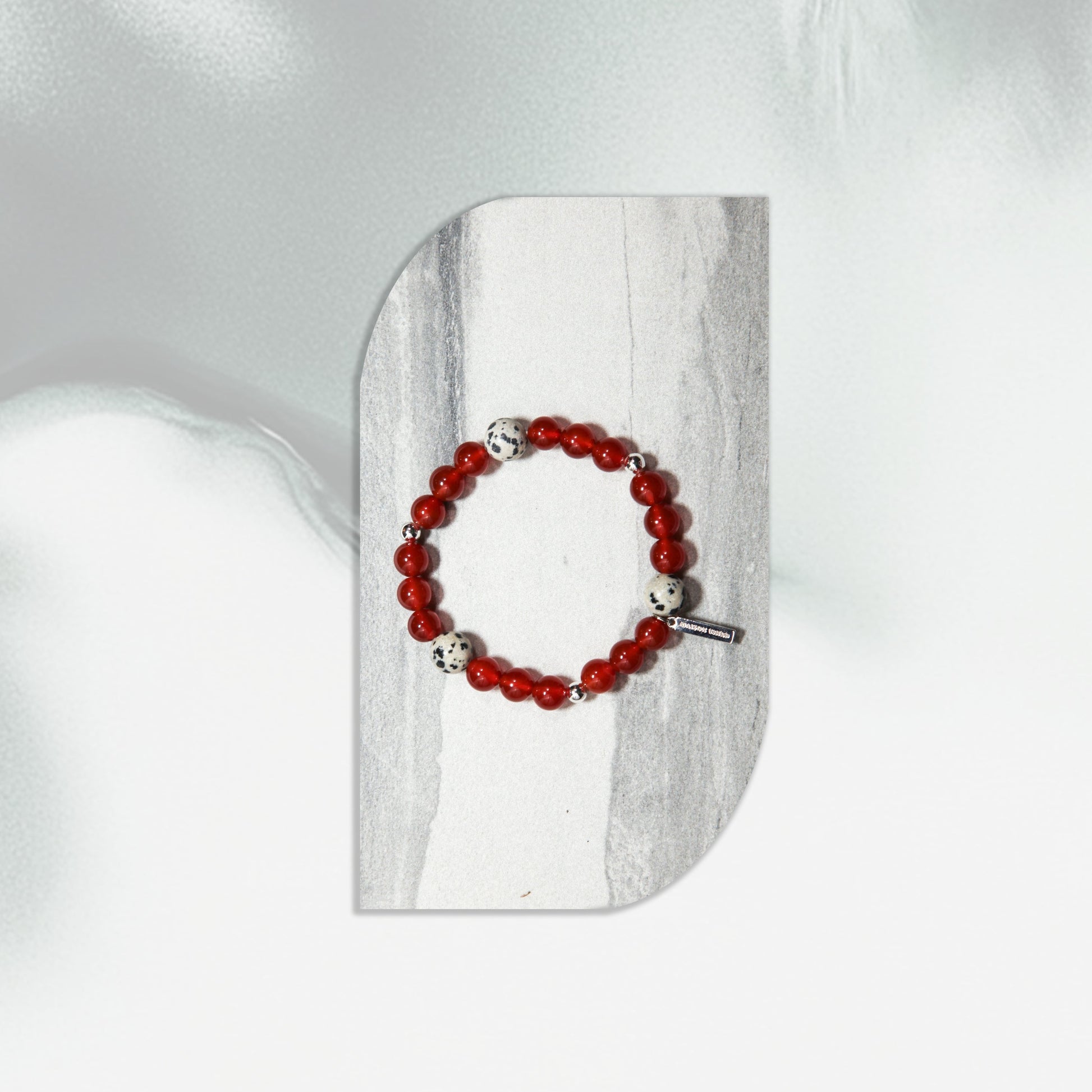 ✦Material: Carnelian, Dalmatian Jasper, 18K white gold over brass.