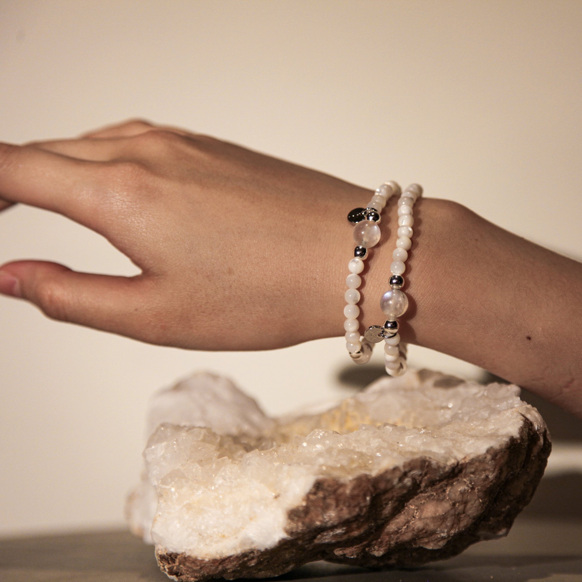 ✦Gemstones: Moonstone enhances intuition and emotional flow, while Mother of Pearl offers gentle protection and inner calm. Together, they create a soft, nurturing energy—fluid, intuitive, and serene. Reflecting the essence of water and moonlight, this pairing invites clarity, emotional balance, and quiet strength.