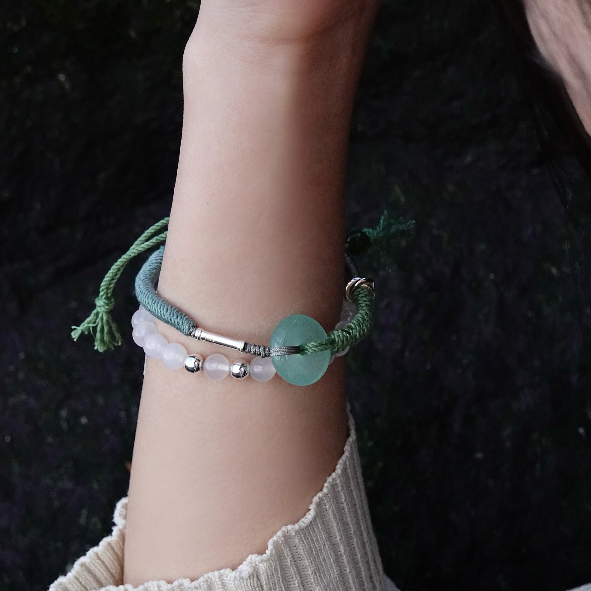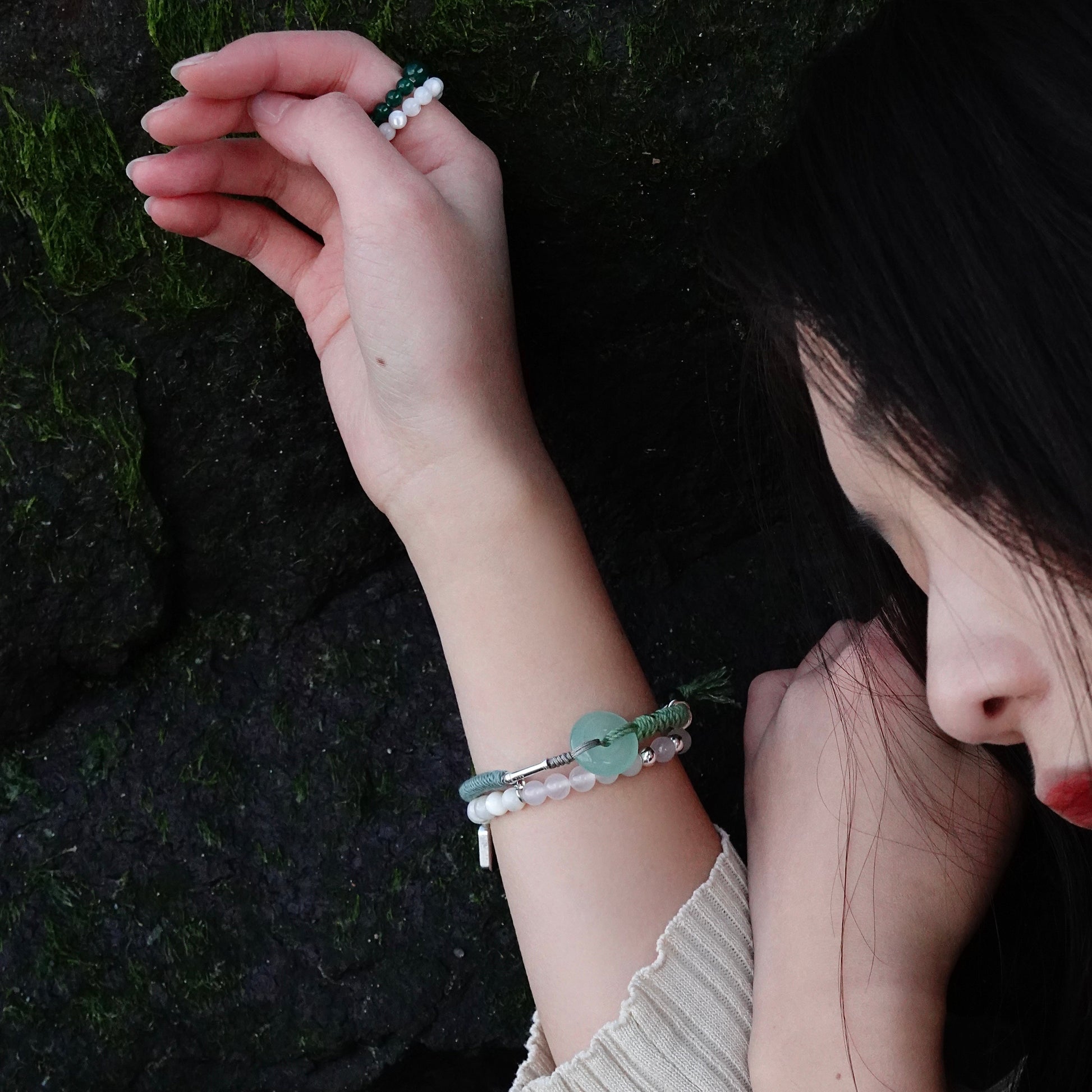 ✦Gemstones:Jade, revered for emotional well-being and good fortune, pairs with green jasper, known for healing and protection. Together, they harness nature's energy, inspiring growth, new beginnings, and creativity, empowering the wearer.