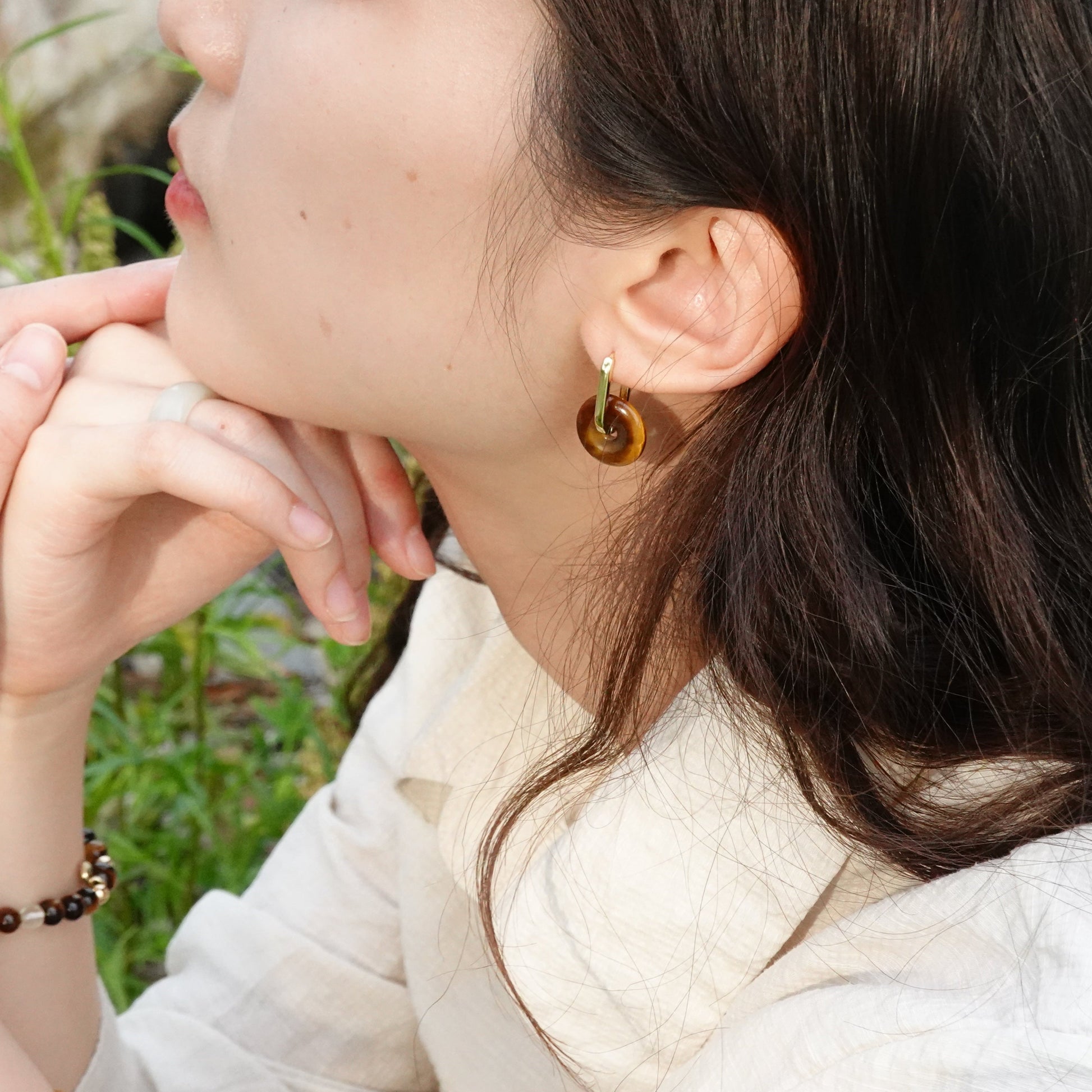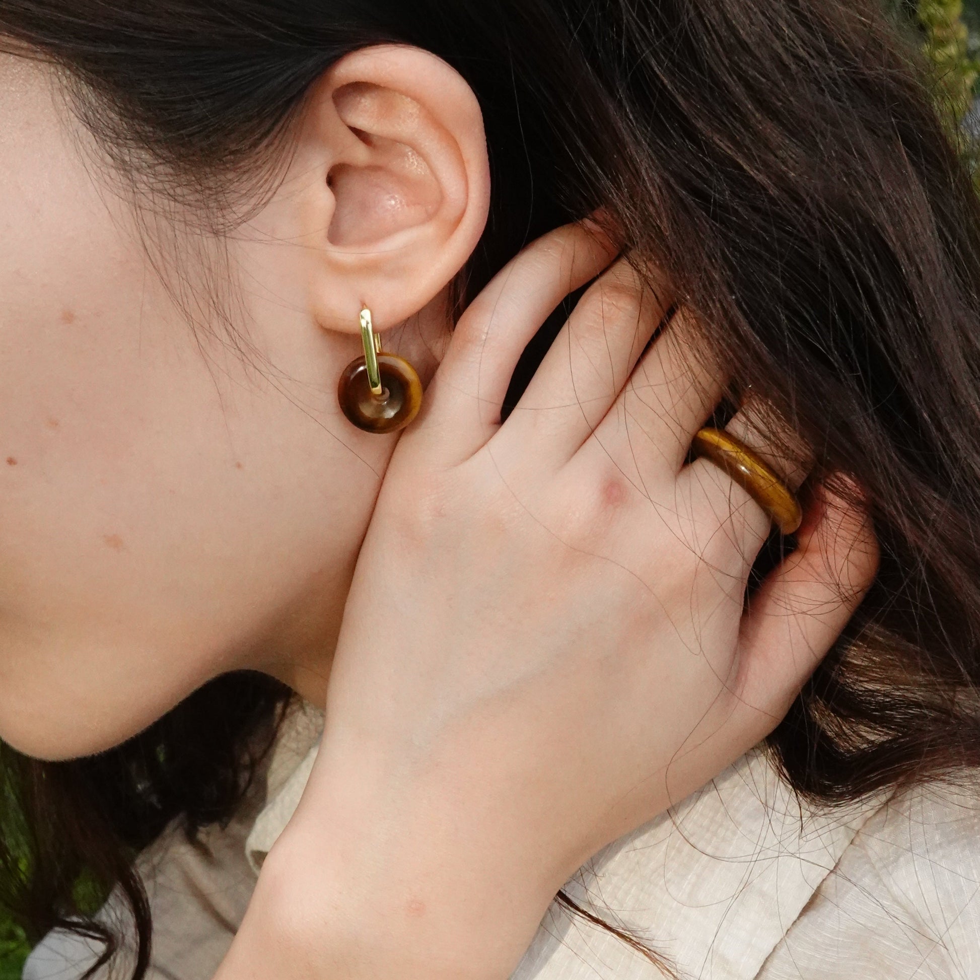 Ping An | Tiger's Eye Peace Buckle Earrings - Earth