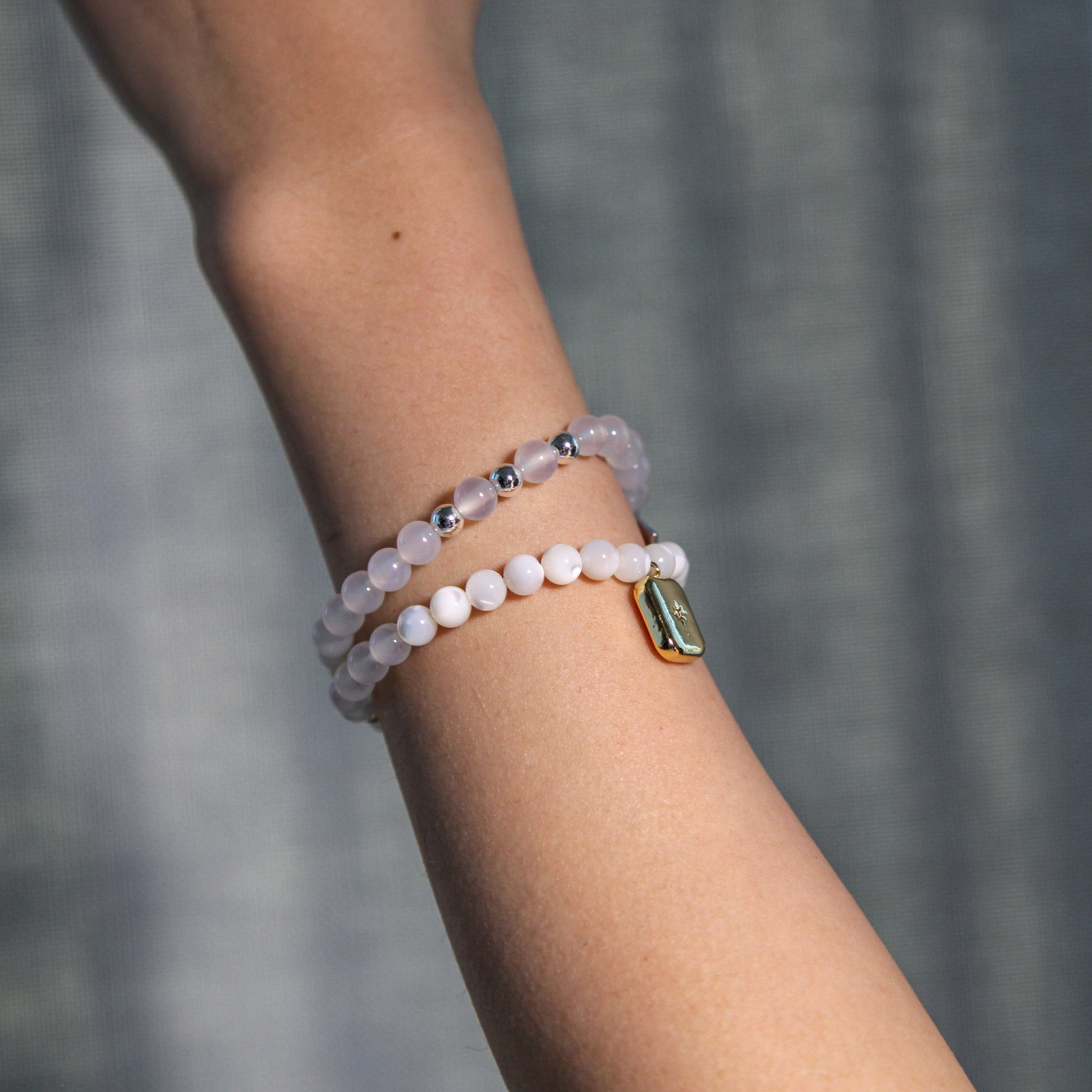 The Pure Lumina bracelet captures serene light, like moonlight on calm waters. Featuring Mother of Pearl, White Jade, and a delicate Northern Star locket, it embodies the purity and clarity of the Metal element. The Northern Star symbolizes guidance and hope, while the soft glow invites resilience and tranquility. This bracelet is a reminder of inner light, peace, and the guiding force of the stars.