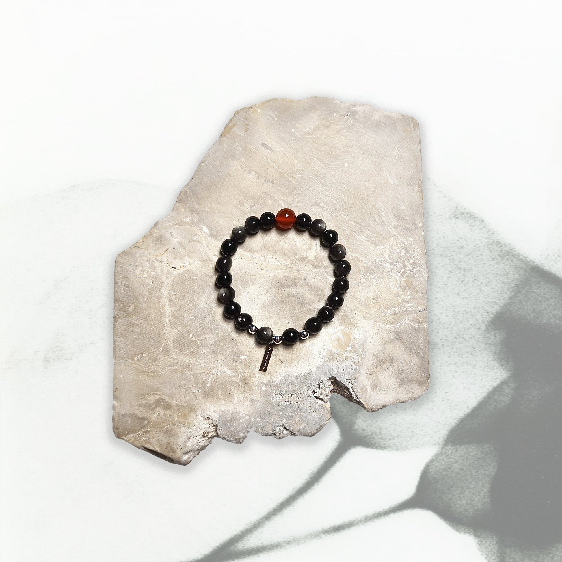 Shadow & Spark Bracelet - Carnelian Silver Obsidian