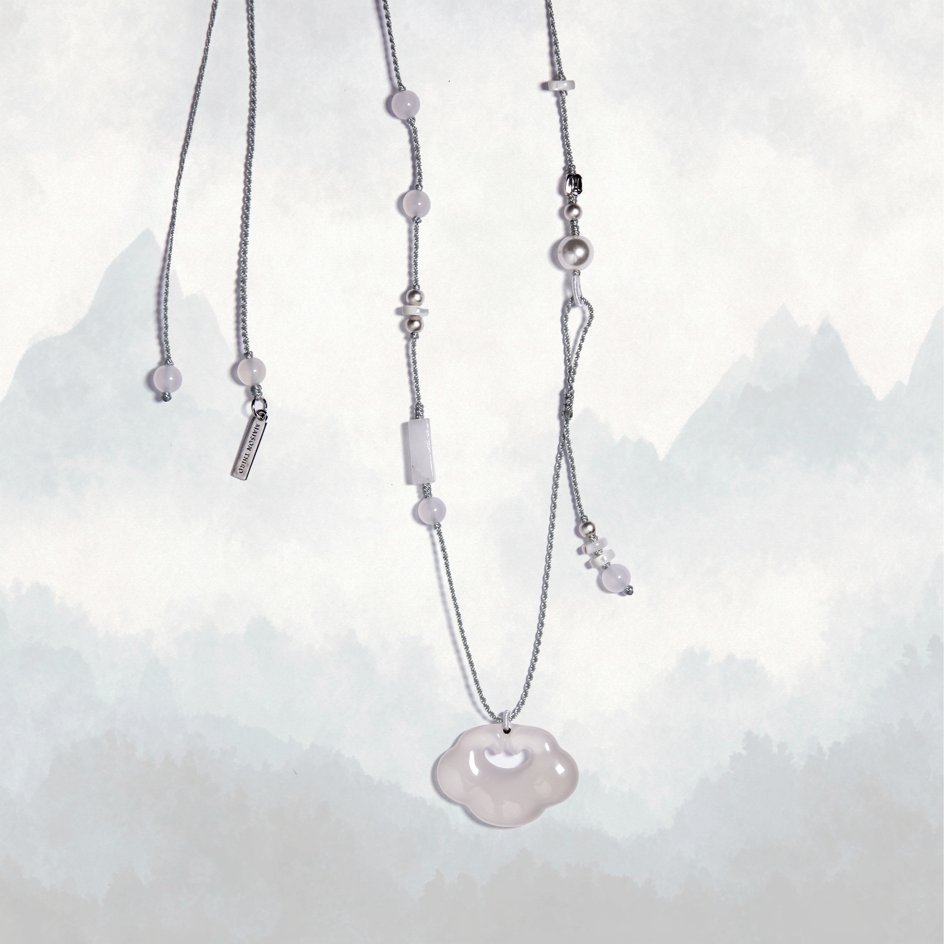 Inspired by the misty clouds at dawn drifting over Mount Qingcheng, the Yun Collection features hand-braided pieces with pastel, dreamy gemstones. The centerpiece, Cloud Lock, is a traditional Chinese symbol of protection and good fortune. Once gifted to “lock in” blessings, the cloud lock now takes on a new meaning: a modern talisman of sanctuary, strength, and grace.