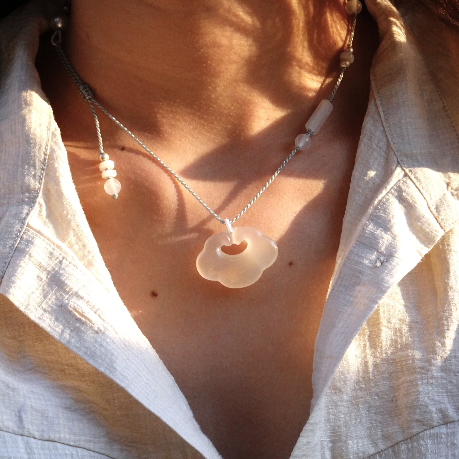 ✦ Materials: 925 sterling silver. Ice White Chalcedony. Pearl. Mother of Pearl.